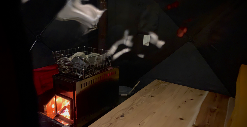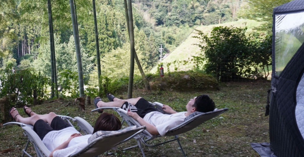 静かな里山の自然に包まれながら、プライベートテントサウナとご宿泊、さらに夜のナイトサウナを